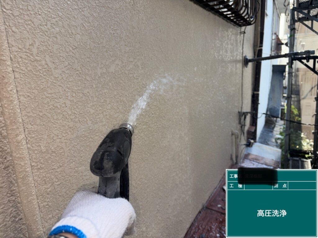 塗装前にしっかり高圧洗浄をおこない綺麗にしていきます❗️