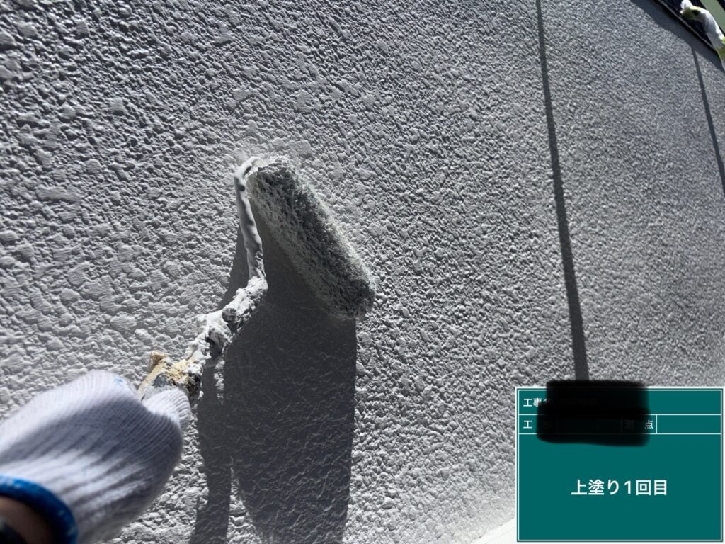 大阪市西成区J様邸にて外壁塗装上塗り1回目と2回目をおこないました!