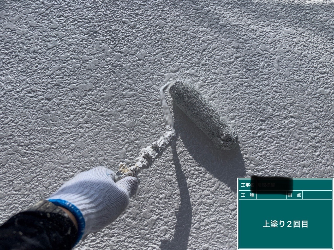 上塗りは2回塗ることで膜厚もつき光沢もでて美観性と耐久性がアップするので細かいところまでしっかり仕上げていきます!