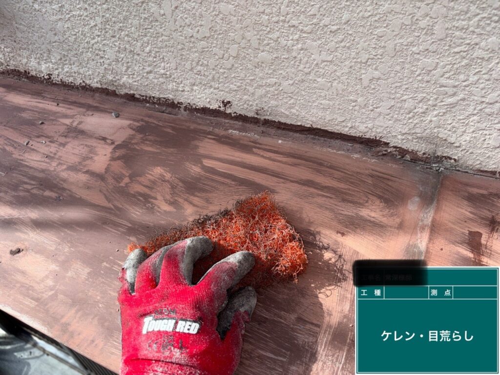 ケレン目荒らしでめくれている塗膜を剥がし、細かい傷をつけて塗料の密着を良くします!