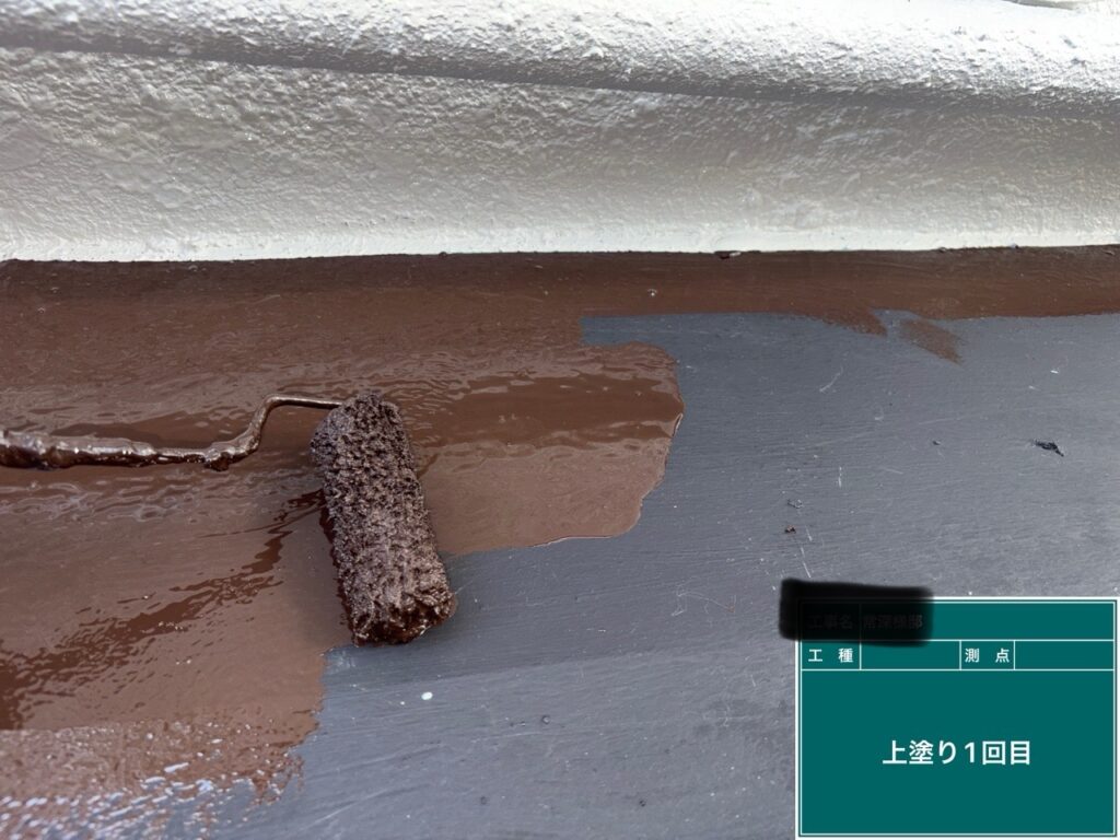 大阪市西成区J様邸にて庇の錆止め塗装と上塗り1回目2回目の塗装をおこないました!