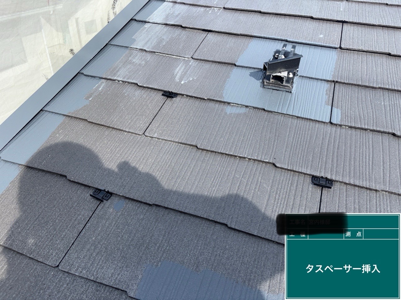 兵庫県明石市にて屋根にタスペーサーを挿入していく作業をおこないました!