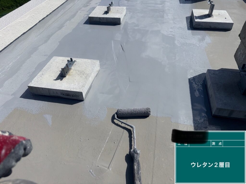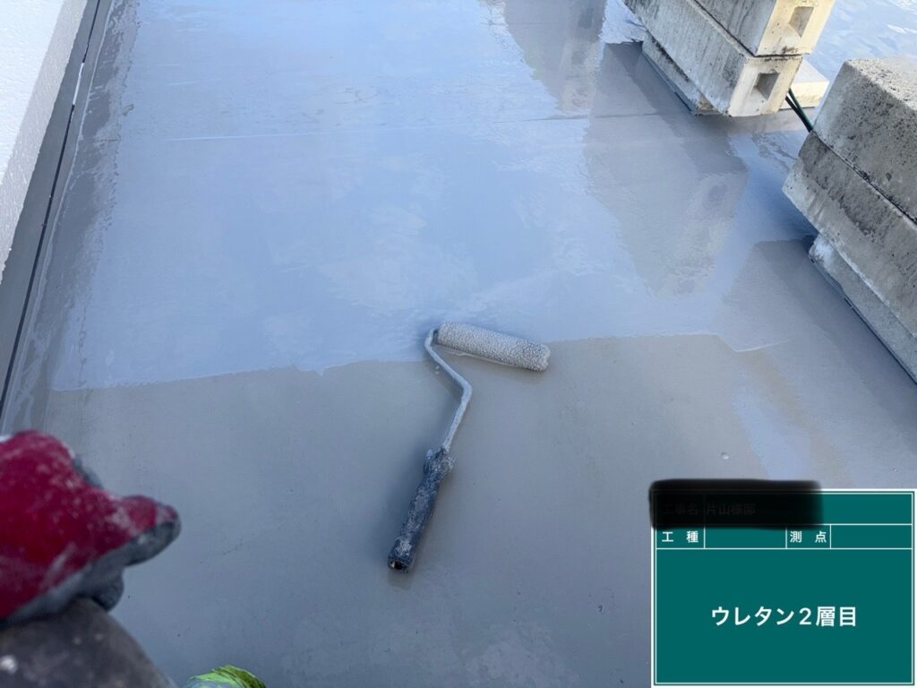兵庫県洲本市K様邸にウレタン防水2層目の塗装工事をおこないました!