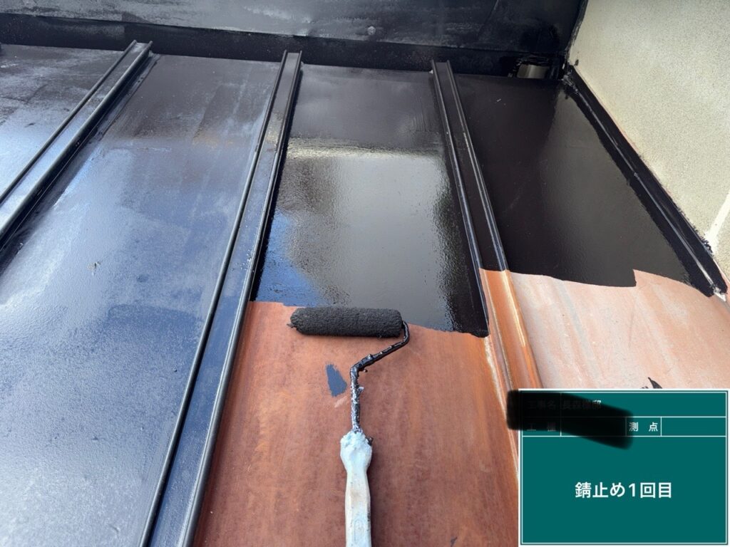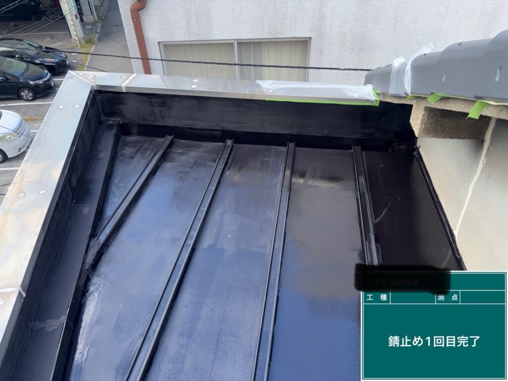 大阪市北区にて屋根板金の錆止め塗装をおこないました!