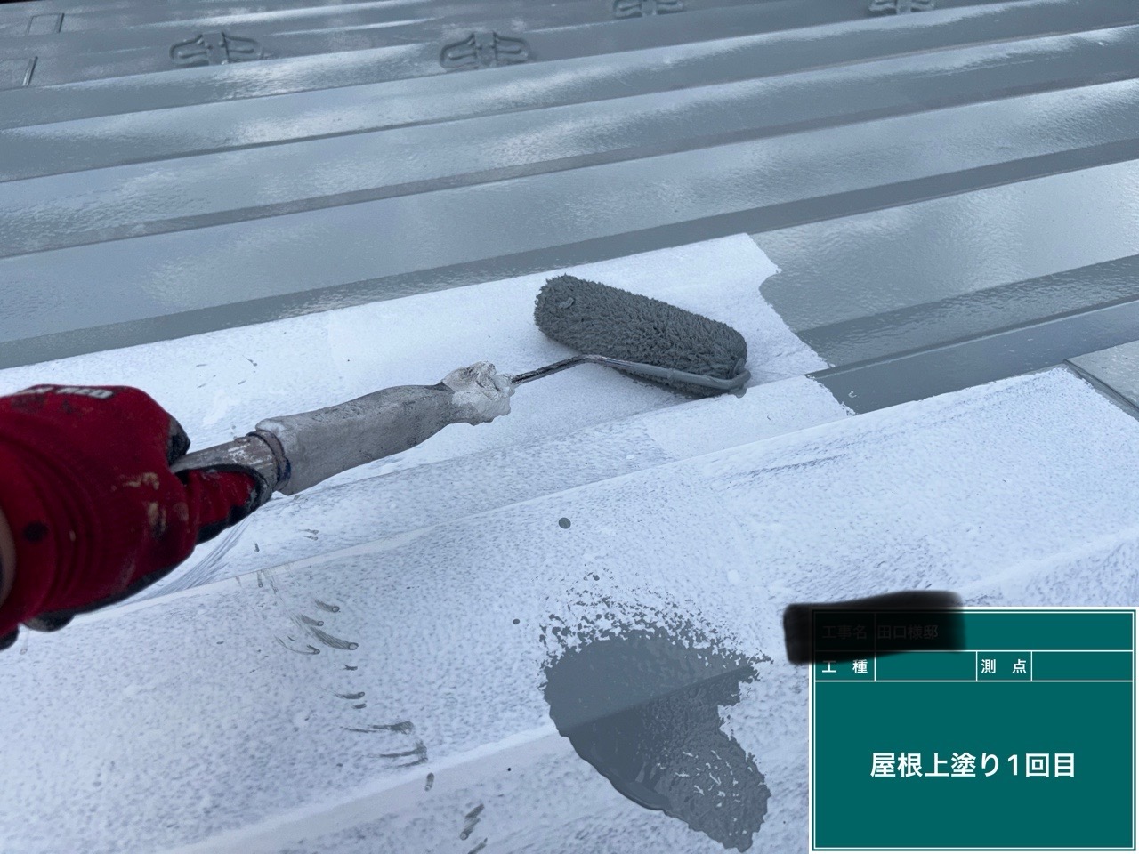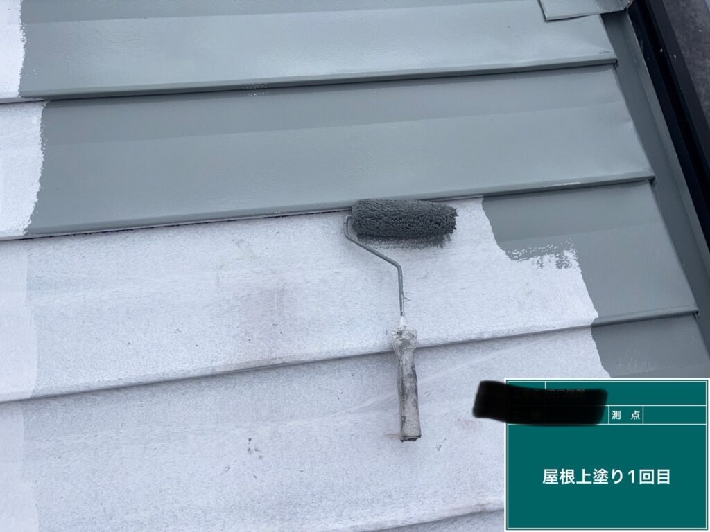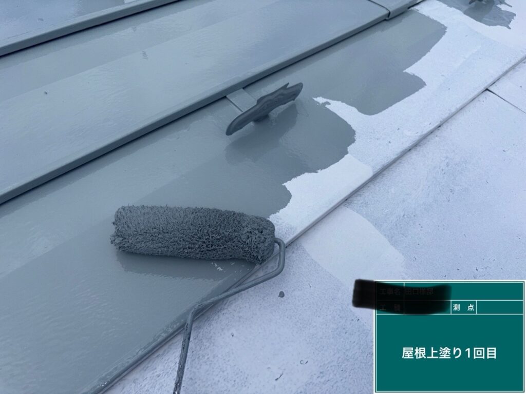 兵庫県宍粟市T様邸にて屋根の上塗り1回目をおこないました!