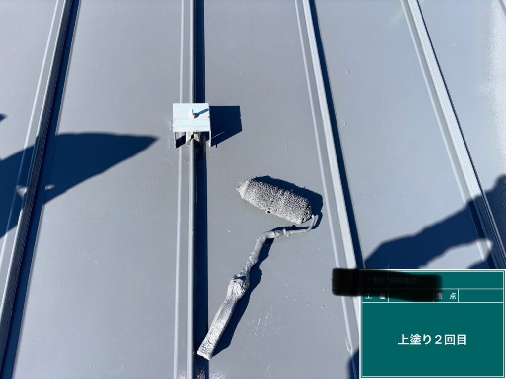 大阪府岸和田市I様邸にて屋根の上塗り2回目をおこないました!
