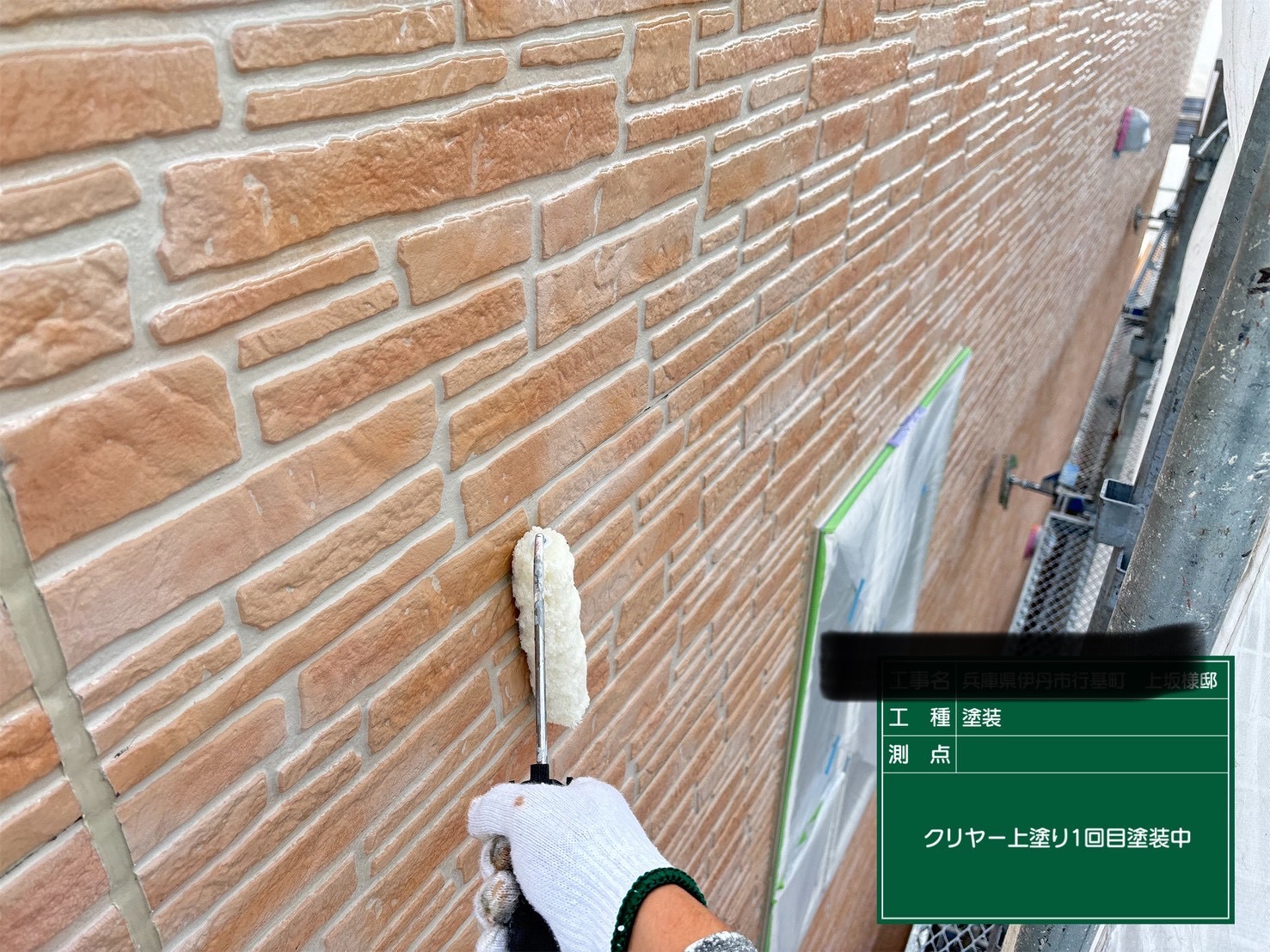 兵庫県伊丹市K様邸にて外壁の上塗り1回目をおこないました!