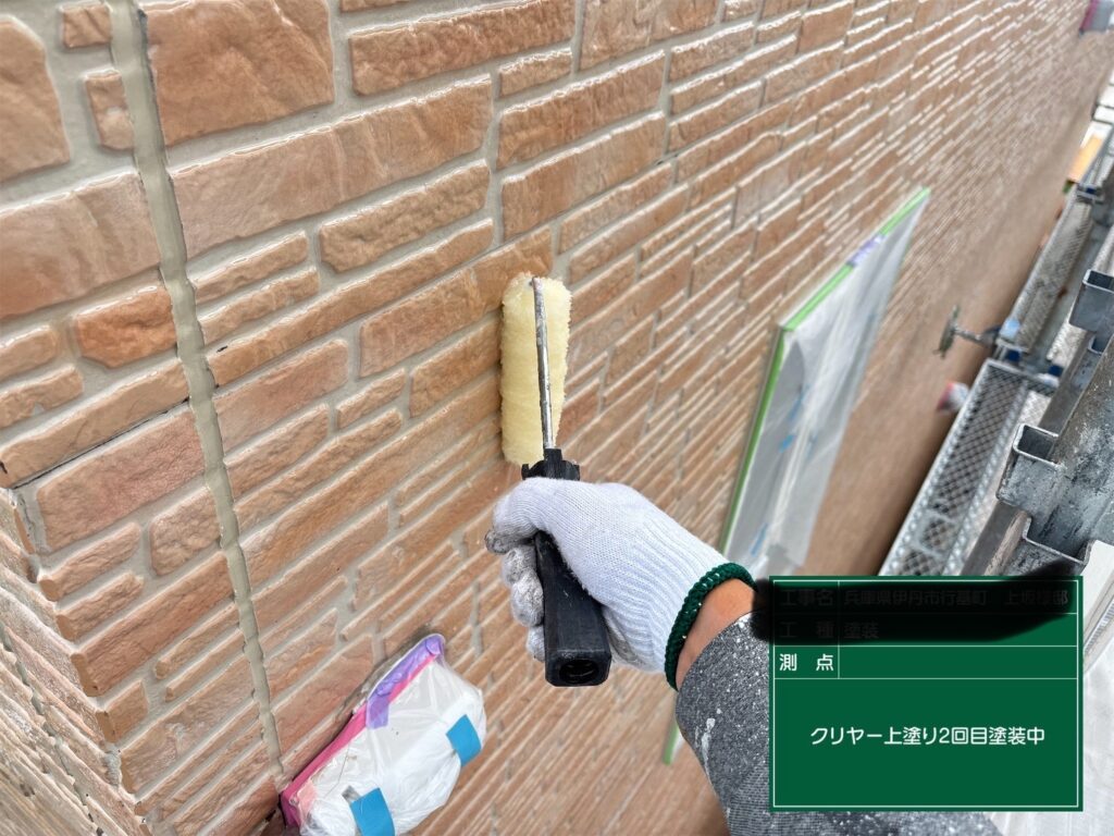 兵庫県伊丹市K様邸にて外壁の上塗り2回目をおこないました!