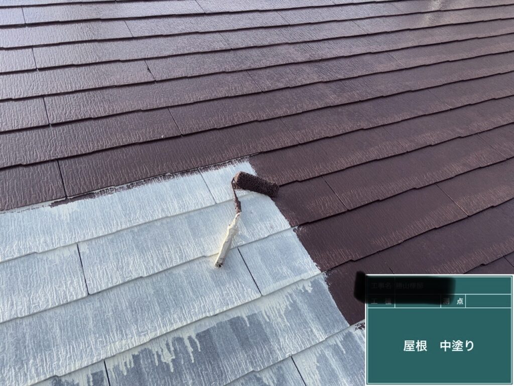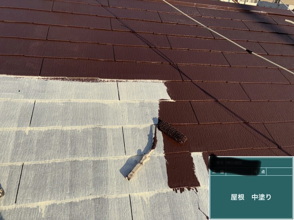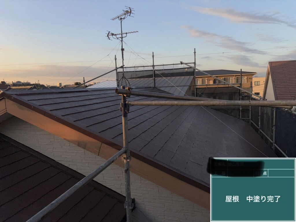 大阪府東大阪市K様邸にて屋根塗装上塗り1回目をおこないました!