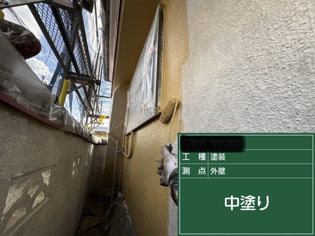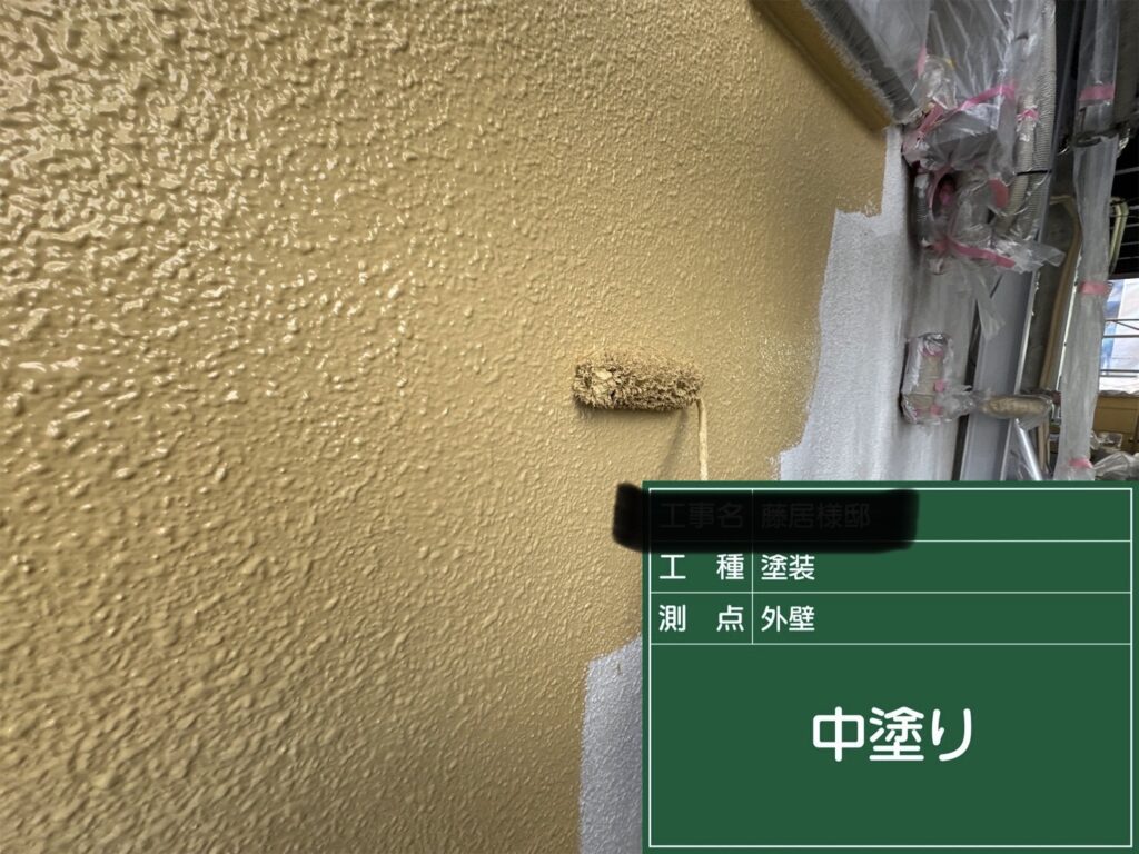 奈良県奈良市F様邸にて外壁の上塗り1回目をおこないました!