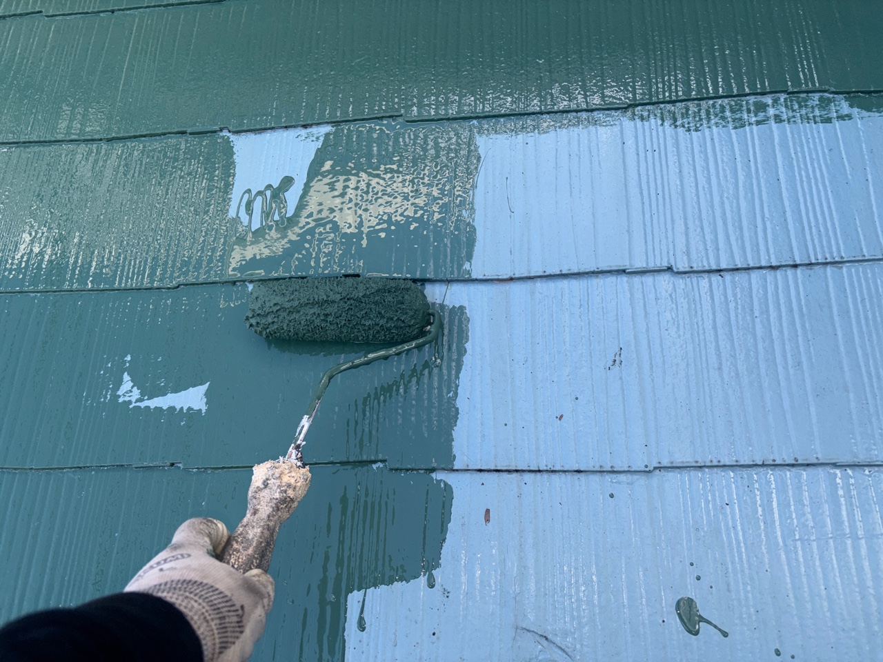 【兵庫県洲本市】屋根上塗り1回目塗装