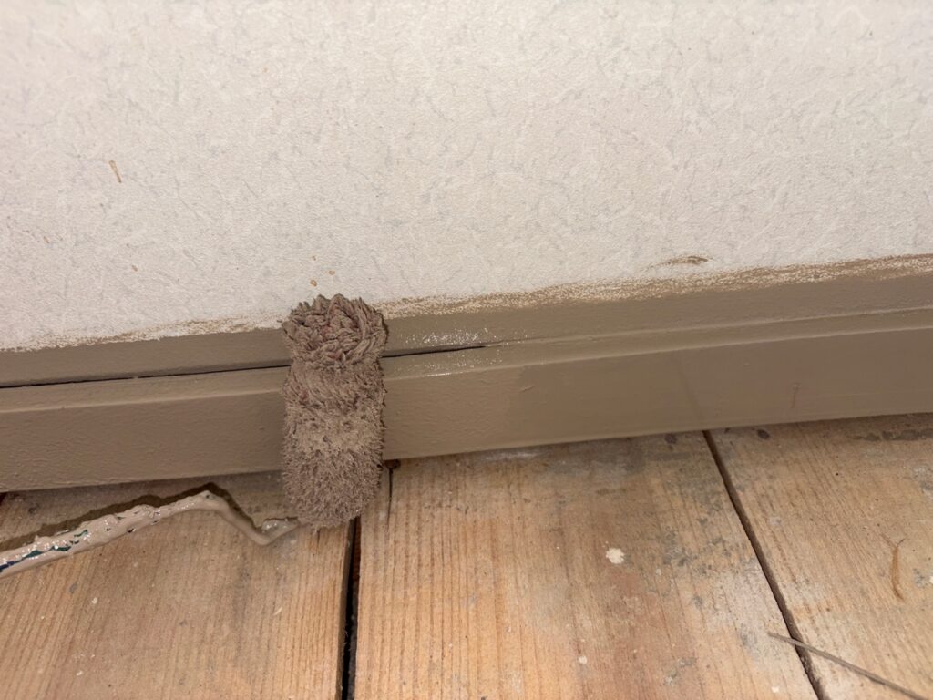 ホーム » 現場ブログ » 【大阪府枚方市】部屋内塗装。木枠・木巾木上塗り2回目