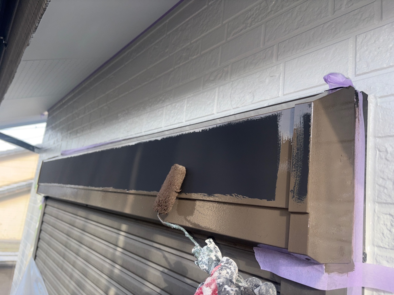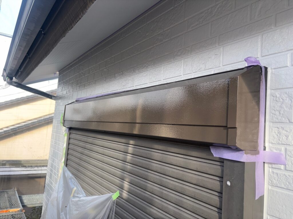 京都市左京区にてシャッターボックスの上塗り1回目の塗装をおこないました!