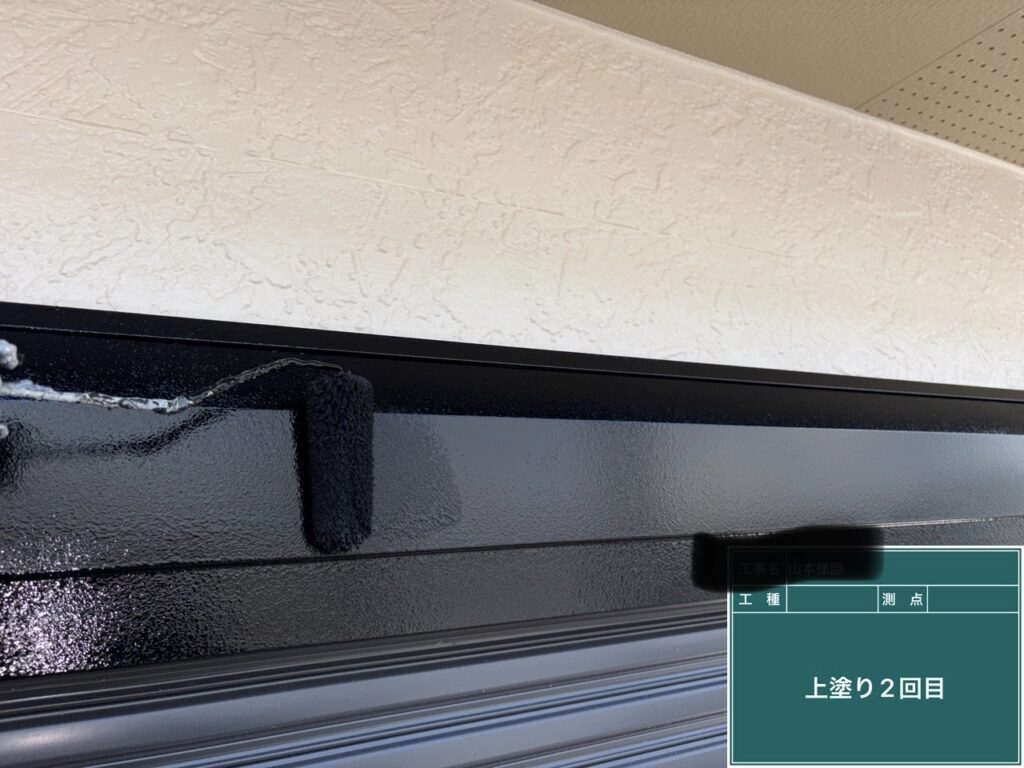 本日はシャッターボックスの上塗り2回目(仕上げ塗装)を行いました。