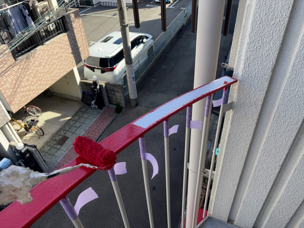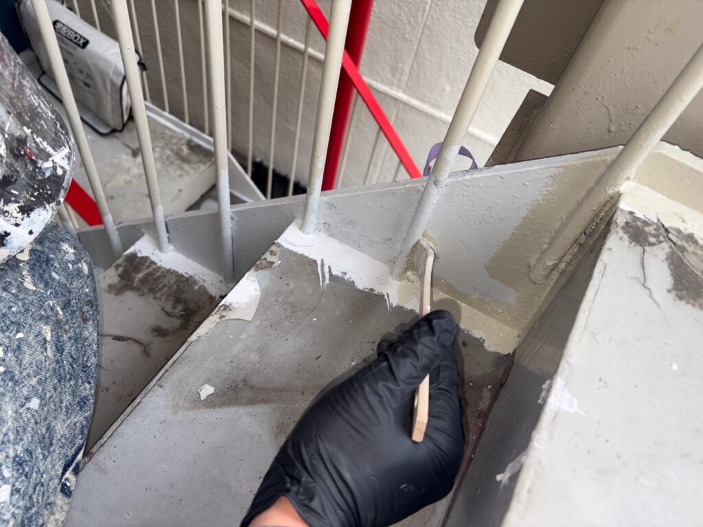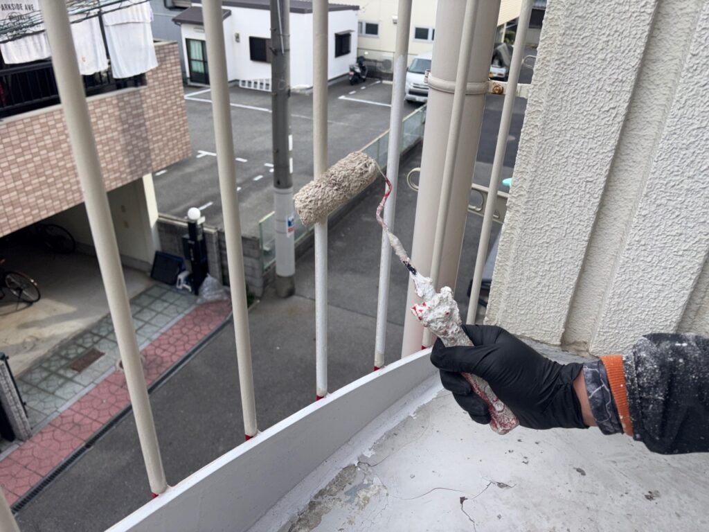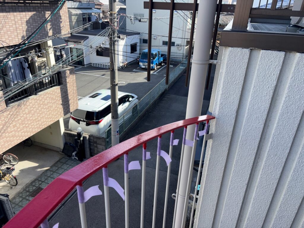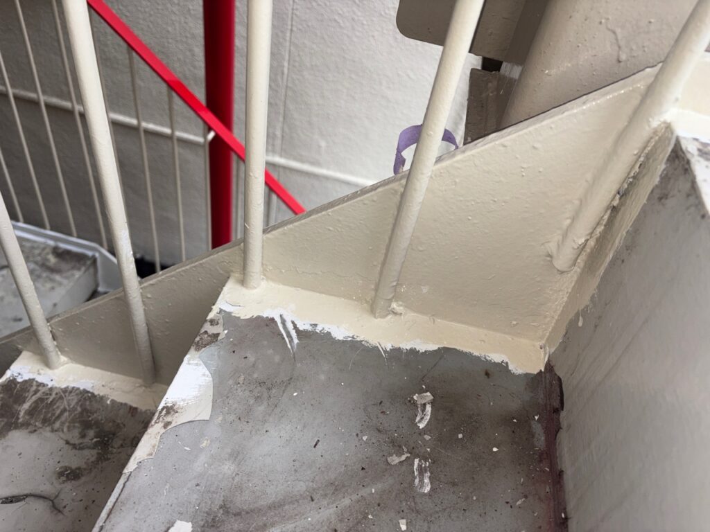 手摺の塗装は面積こそ小さいですが、