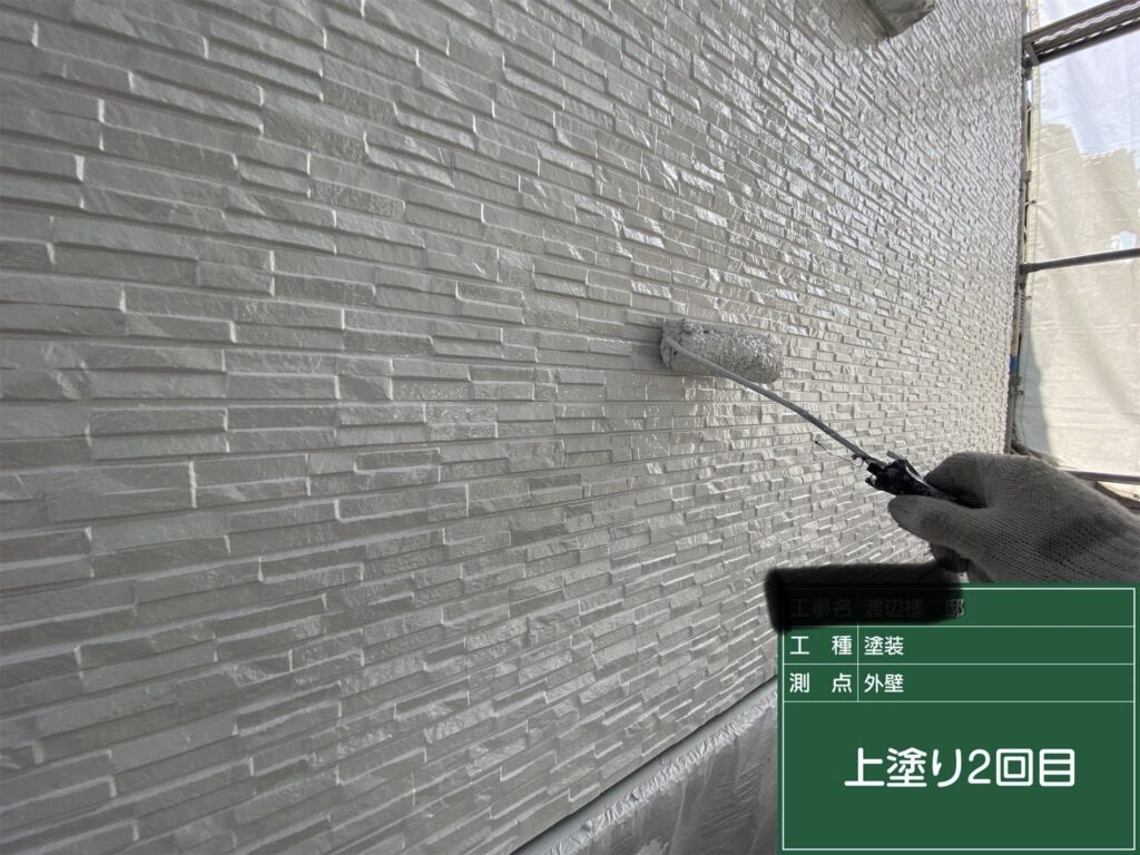 【箕面市】外壁塗装 上塗り2回目|パーフェクトトップSiで仕上げ施工