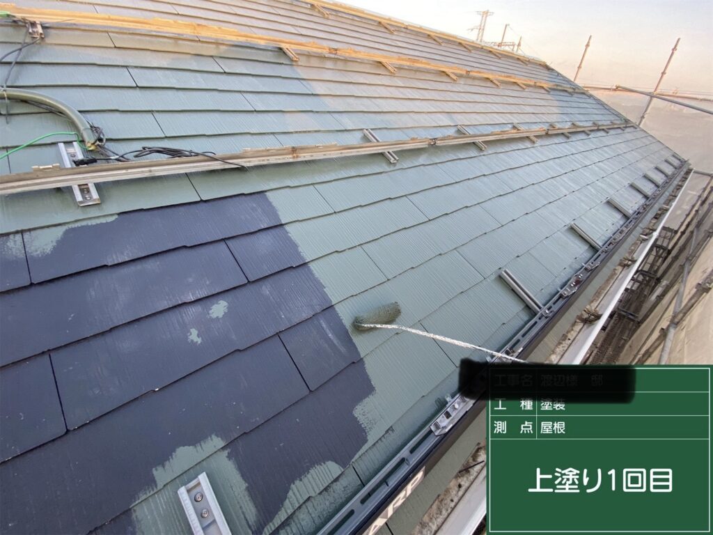 本日は大阪府箕面市にて、屋根塗装工事の上塗り1回目を行いました!